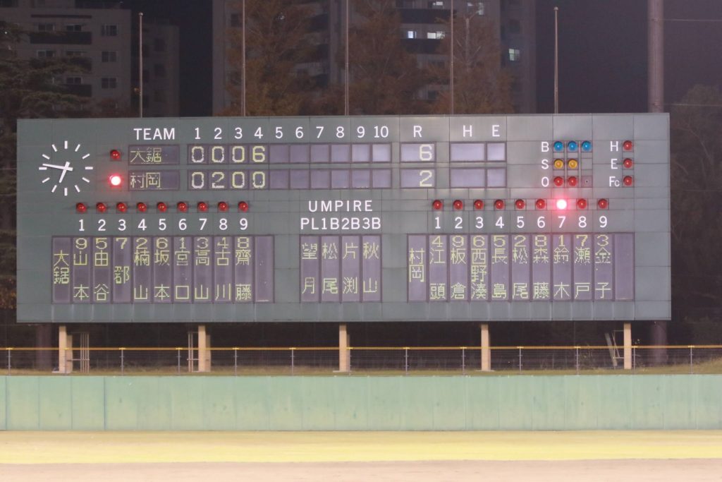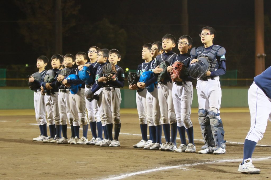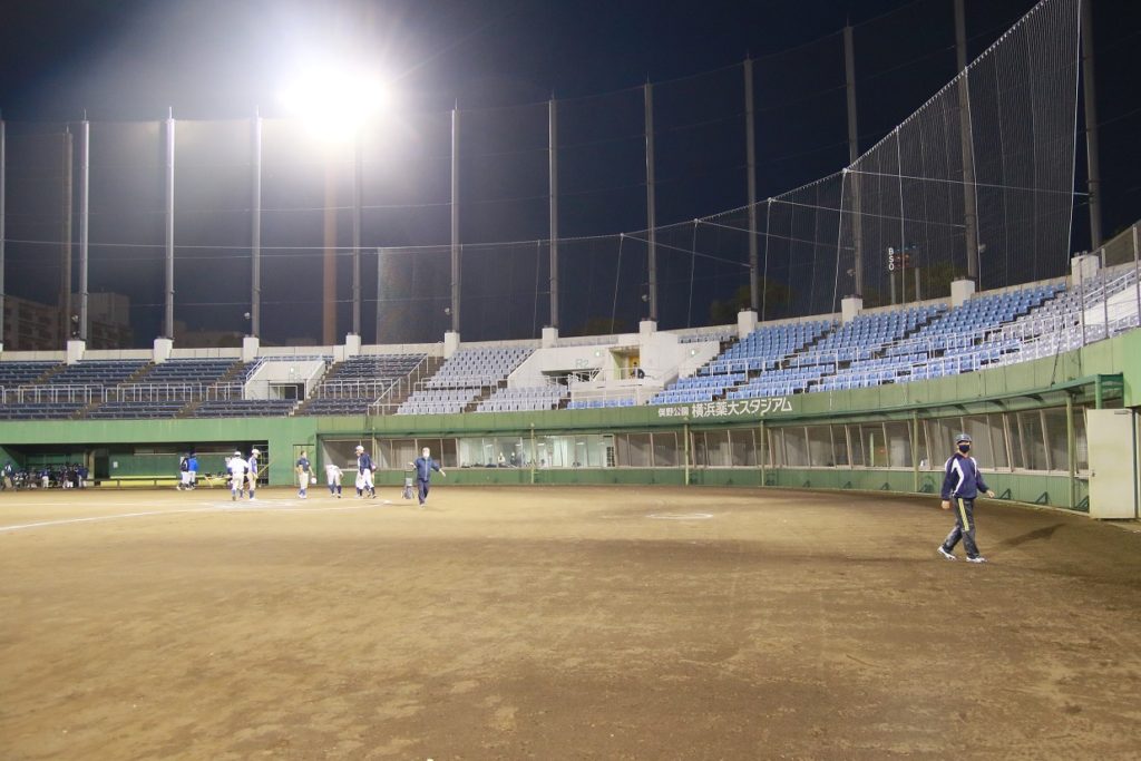 村岡フェニックスさんと記念交流試合を開催しました。なんと立派な横浜薬大スタジアムです!しかも、ナイターゲームです!!