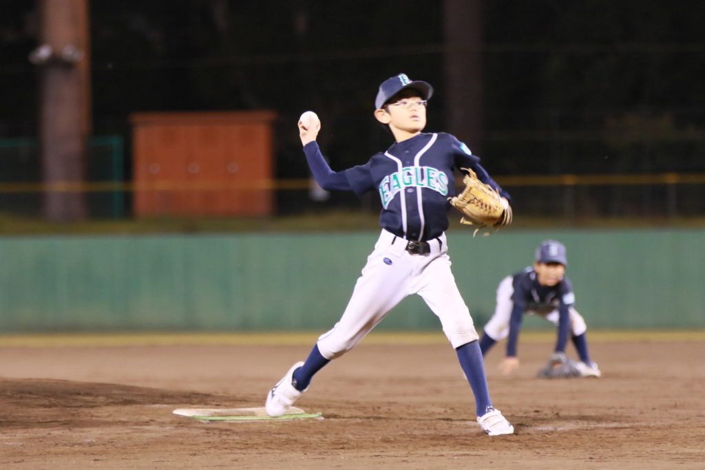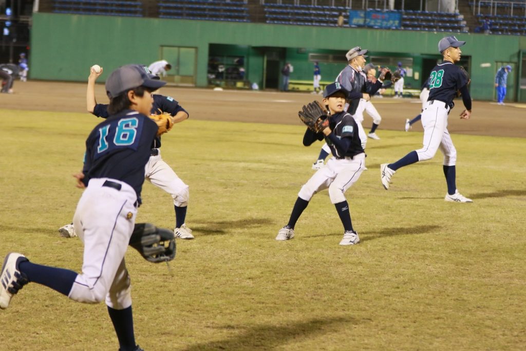 アップのキャッチボールから子供はもちろん、大人のコーチ陣も夢中で楽しんでいました。球場内放送で一人一人の選手紹介を行い、試合を開始しました。