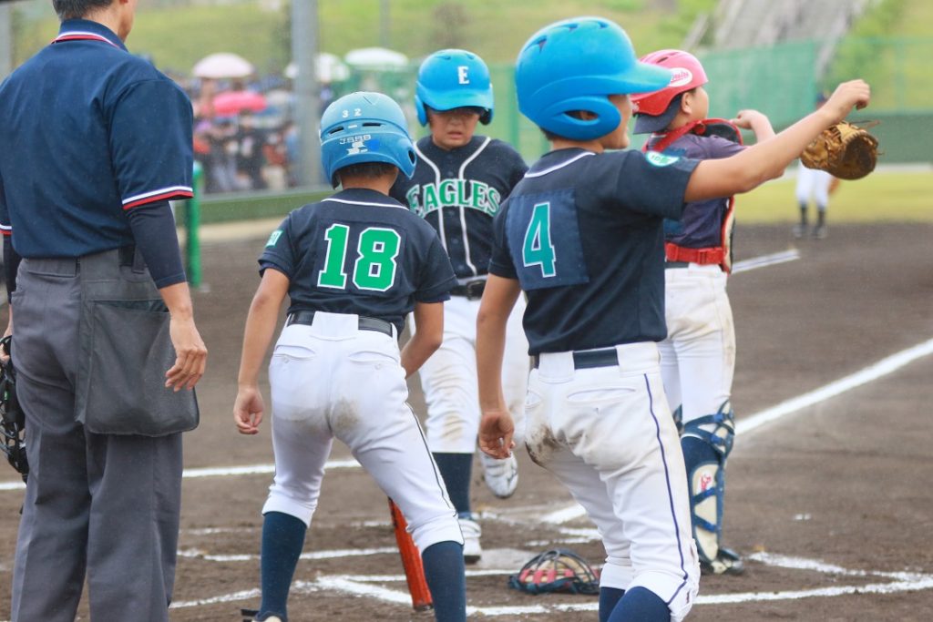 6年生には最後の市大会、曲がりなりにもここまで頑張ってきた子供たちに、まずはとにかくどんな形でも1勝してほしいところです。たぶん保護者やスタッフの緊張の方が、選手(子ども)たちより絶対上回っていると思える状況で、大会の試合消化は予定時間より1時間半遅れ。天気も最後までもつのか不安な天気。しかも目の前で行われてる前の試合は序盤、中盤と見てるだけでシビれるような投手戦を繰り広げてて、全然関係ないんですけど余計な緊張感をもらってしまい、緊張による疲労感MAXの中で試合がついに開始しました。