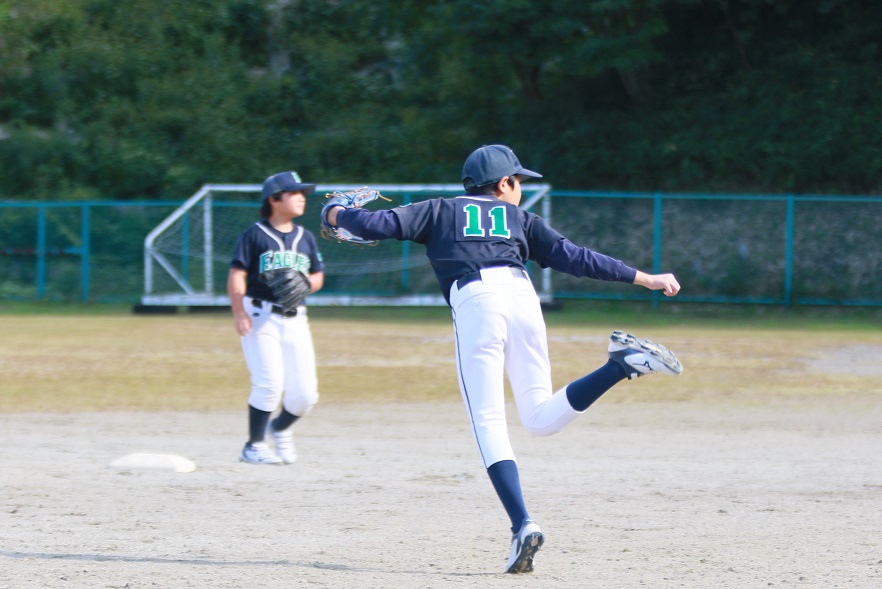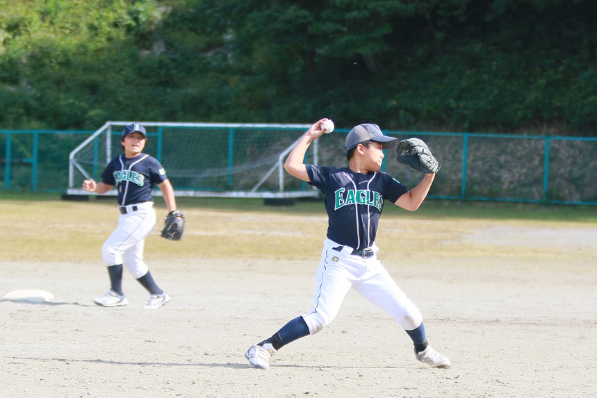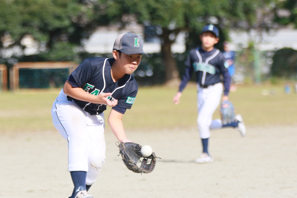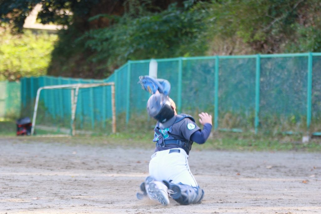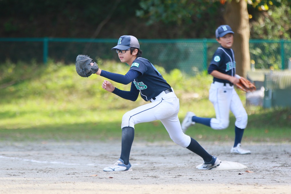 先週と打って変わっての秋晴れのもと、大鋸グラウンドで藤沢少年野球クラブさんと中央リーグ1部の試合を行いました。中央リーグは各チームホーム&アウェイの2試合ずつ行われるリーグ戦です。藤沢少年野球クラブさんとは今回その2試合目。前回は6月に5-8で敗戦しています。負け越したくはないし、来週に試合が入りそうな藤沢市大会2回戦に向けても勢いをつけたい、と挑んだ試合でした。負ける試合のほとんどが守備の乱れから大量失点ですが、今日はそつなくこなして、失点を最小限に抑えて勝つことが出来ました。そんな守備の写真をチョイスしました。