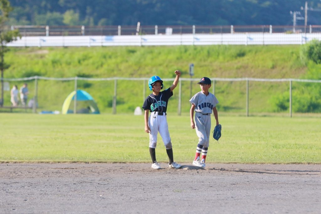 相変わらずの猛暑の中、本町少年野球部さんと中央リーグ戦の試合を境川グラウンドにて行いました。午前中のジュニアの春季大会敗戦もあり、AとCどっちも負けるわけにはいかないと挑みました。