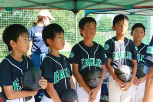 大鋸グラウンドにて藤沢少年野球クラブさんと中央リーグ戦の試合を行いました。相変わらずの猛暑の中、中盤までしびれる投手戦を繰り広げました。