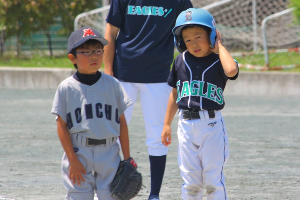 藤沢一中で本町少年野球クラブCさんと、ティースタンドでの練習試合を行いました。私が最初にティースタンドの試合を見た時は、なんで置いて打って野球するのと思いましたが、Jrチームの試合を何度か見て、低学年のピッチャーだと四球連発で打つに至らないことが多々あるので、打って、取って、投げて、というところでゲームするというのもありなんだと知りました。大鋸イーグルスJrチームは勝ち負けよりも、まず野球を楽しむ、をモットーに楽しく、たまーに?真剣な表情も浮かべながら活動してます!