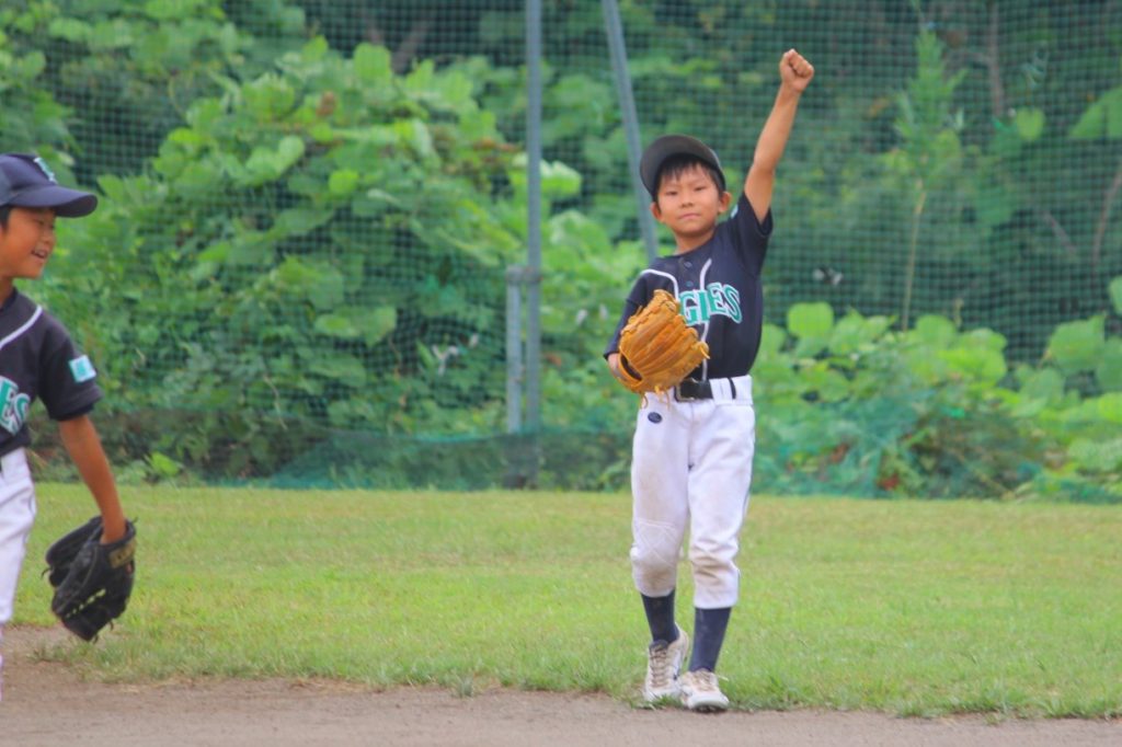 子供たちにとっては短い夏休みの最終日、天神グラウンドにて善行スポーツ少年団Cさんとオレンジリーグの試合を行いました。また、オレンジリーグの試合の後にトスボールの試合も行いました。